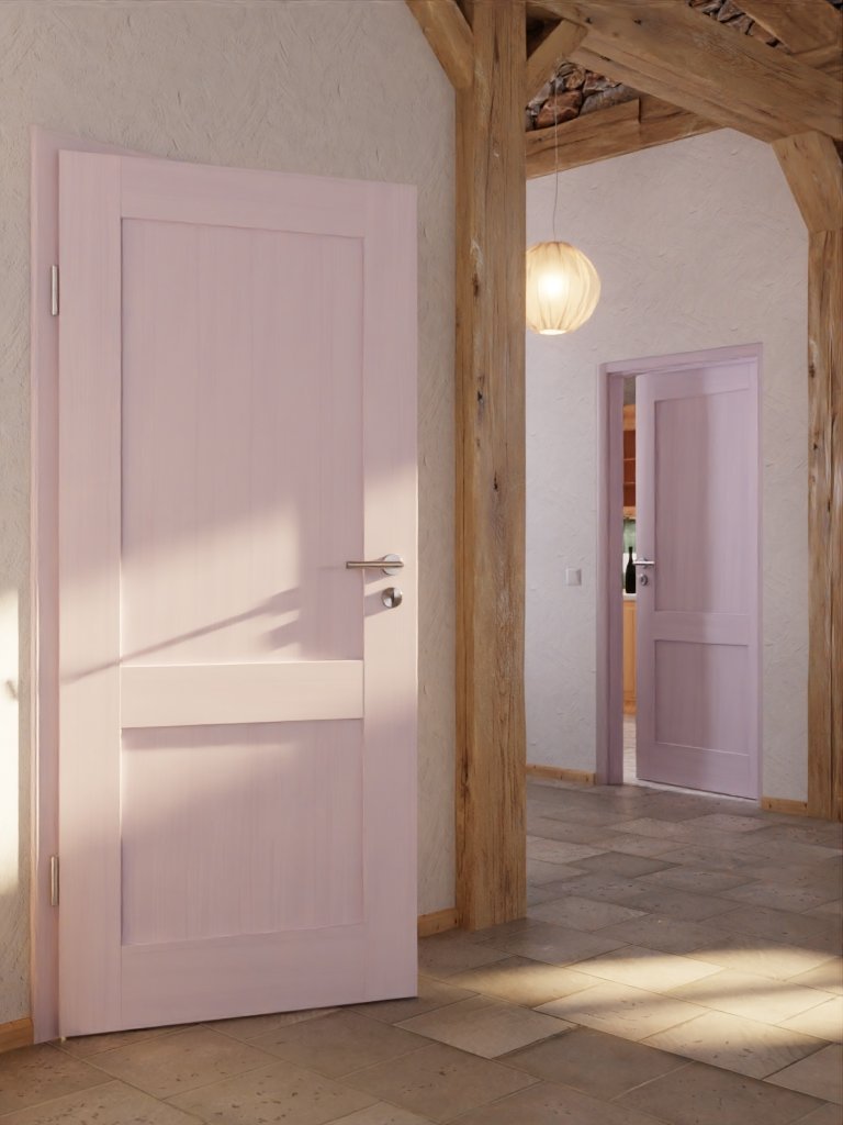 Sklejone drzwi z litego drewna charakteryzują się wyjątkową stabilnością. Fazowane krawędzie elegancko dopełniają wygląd.