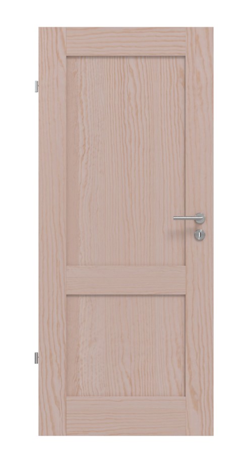 Dwie płaskie wypełnienia z prawdziwego drewna oraz proste listwy łączą się w nowoczesny design. Drewno sosnowe ozdobione jest bezsęcznym usłojeniem, które na każdym skrzydle drzwi odznacza się indywidualnie.
