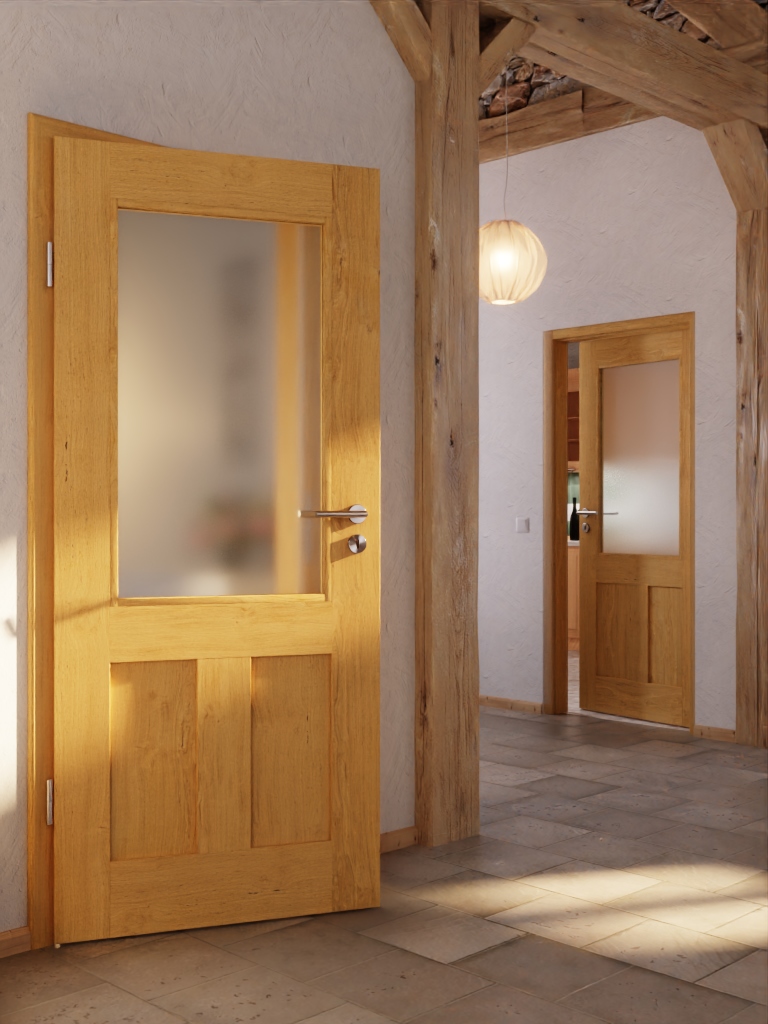 Za szczególnie wysoką stabilność drzwi z litego drewna odpowiada produkcja w budowie klejonej warstwowo. To, czy powierzchnia Twoich nowych drzwi będzie lakierowana, olejowana czy nieobrobiona, zależy całkowicie od Ciebie. Wybierz swoje wymarzone wykończenie w menu konfiguracji.