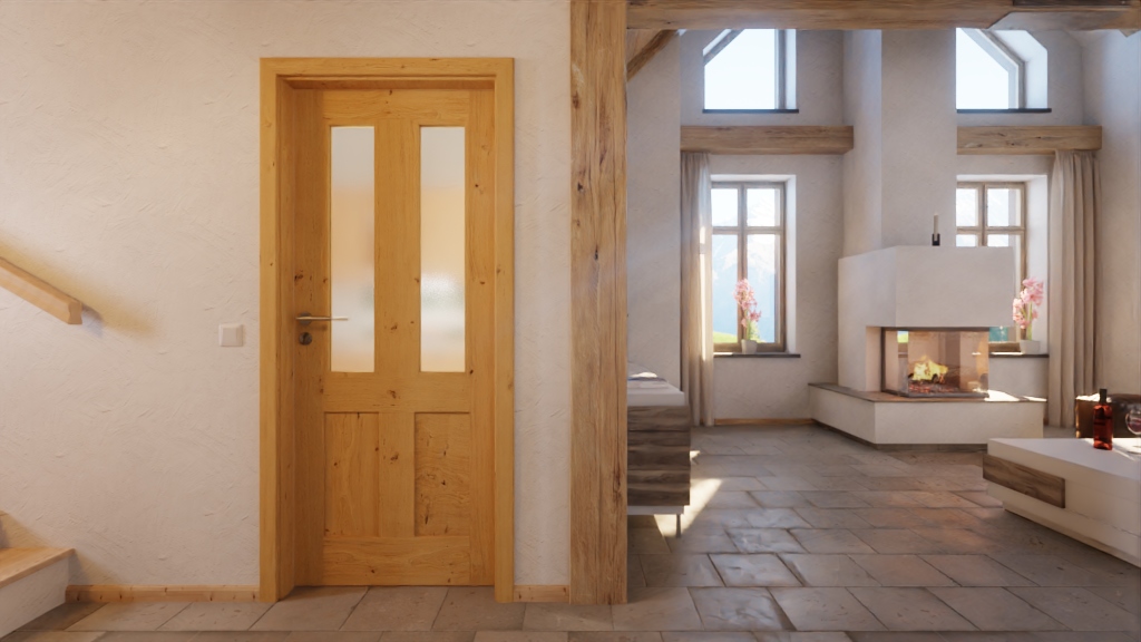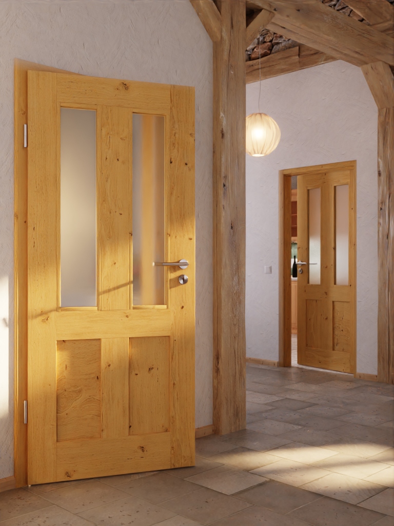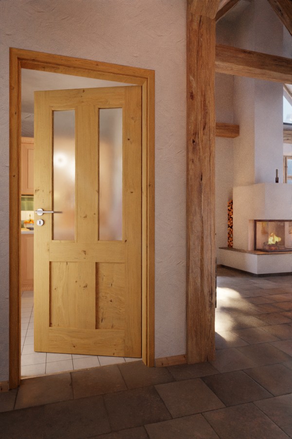 Stylowe drzwi wewnętrzne z litego drewna o grubości skrzydła drzwiowego wynoszącej około 40 mm: