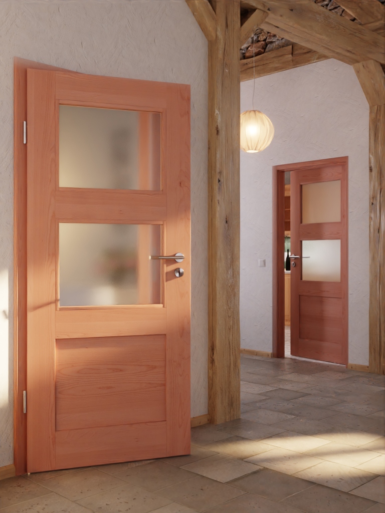 Prosta wewnętrzna drzwi z 100% litego drewna w konstrukcji klejonej: