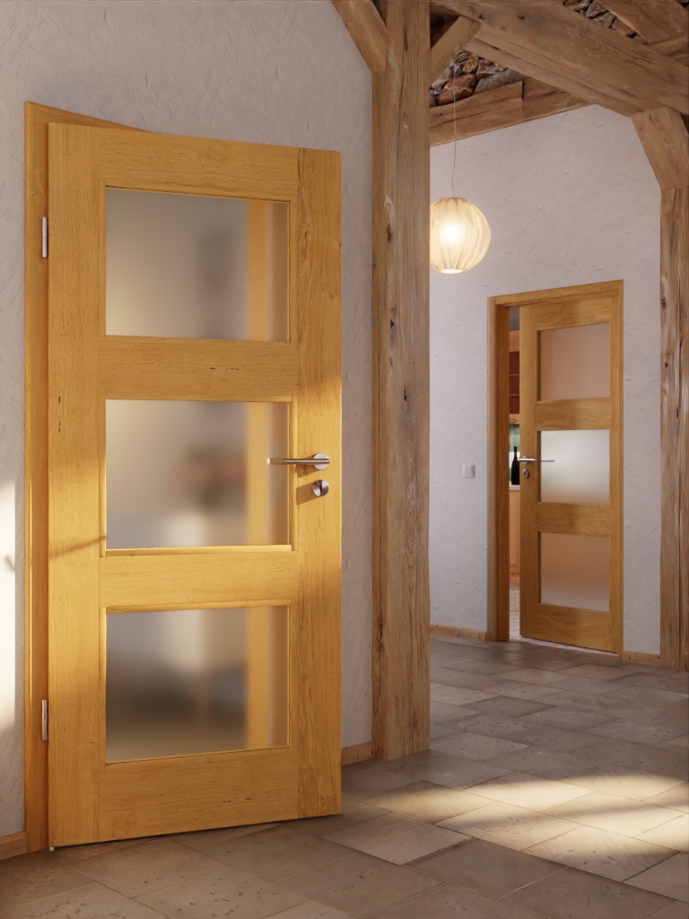 Starannie wykonane w konstrukcji klejonej warstwowo, drzwi z litego drewna charakteryzują się bardzo wysoką stabilnością. Nie może również zabraknąć idealnego wykończenia. Wybierz więc w menu konfiguracyjnym odpowiednią dla siebie obróbkę powierzchni.