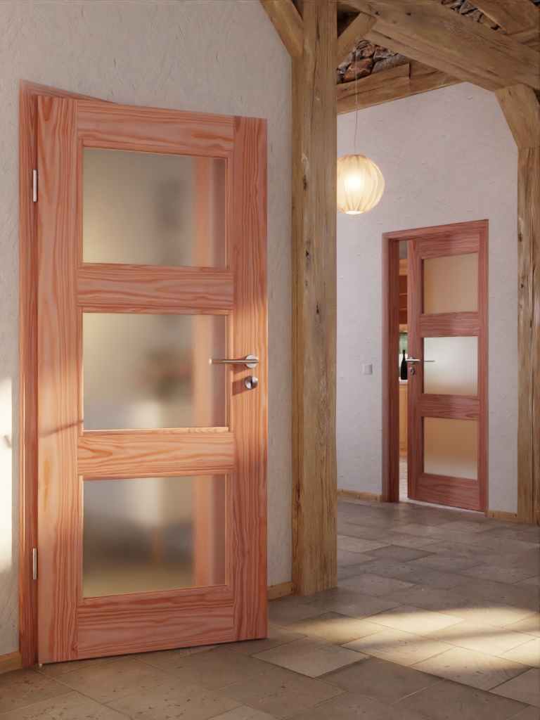 Drzwi z litego drewna zachwycają doskonałą stabilnością, którą osiągają dzięki konstrukcji klejonej warstwowo. Standardowo nieobrobiona powierzchnia może być pomalowana na Państwa ulubiony kolor. Można również wybrać w menu konfiguracyjnym jedną z wysokiej jakości wykończeń i otrzymać drzwi już z gotowym wykończeniem – wybór należy do Państwa.