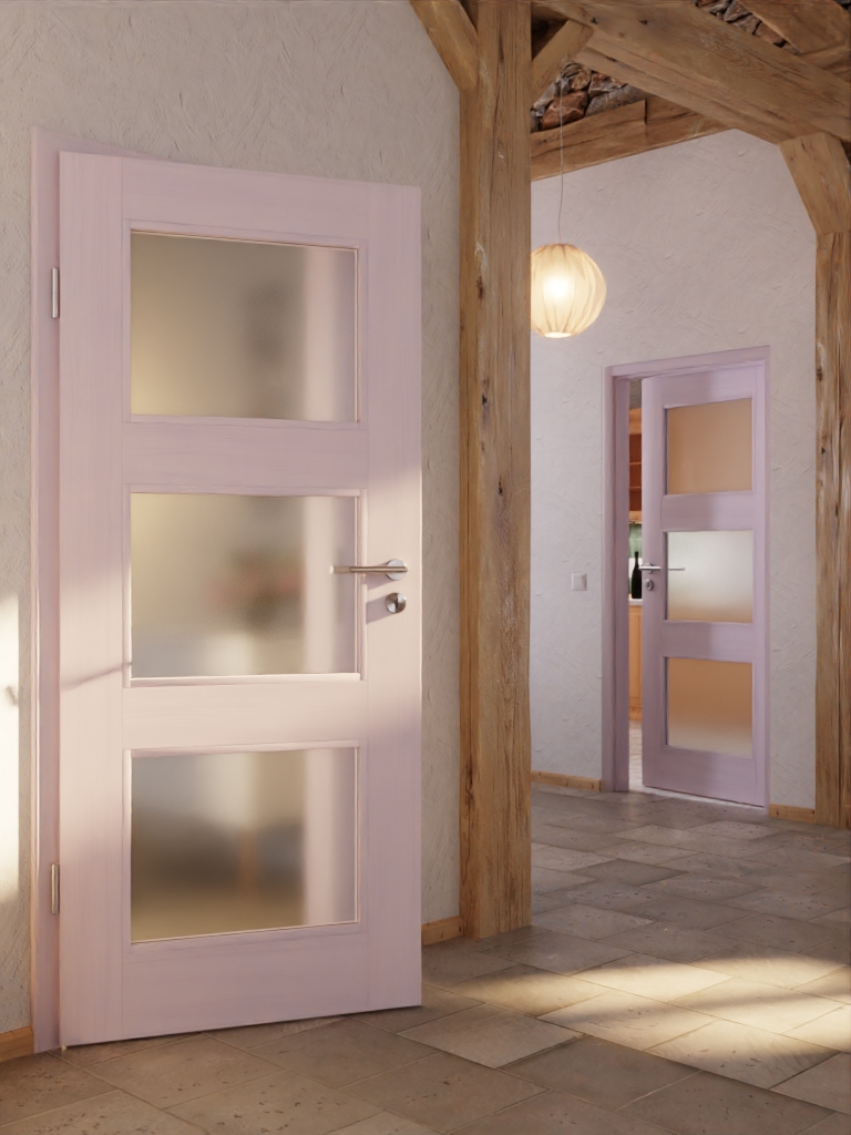 Dzięki klejonemu konstrukcji warstwowemu drzwi z litego drewna osiągają doskonałą stabilność. Lekko fazowane krawędzie podkreślają wysoką jakość wykonania.