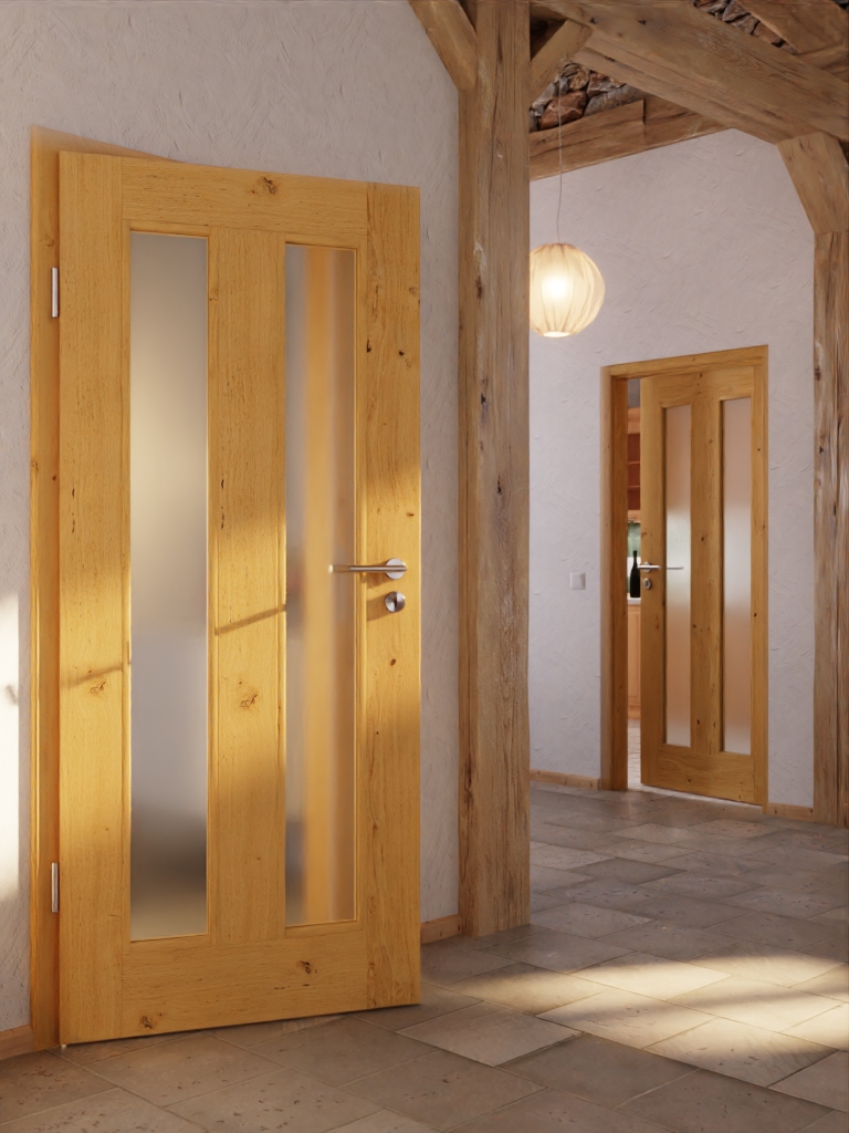 Drzwi z litego drewna zachwycają doskonałą stabilnością, którą osiągają dzięki klejonej konstrukcji warstwowej. To, czy chcesz otrzymać drzwi z standardowym, nieobrobionym wykończeniem, czy z wysokiej jakości wykończeniem, zależy od Ciebie – w menu wyboru dostępne są różne opcje.