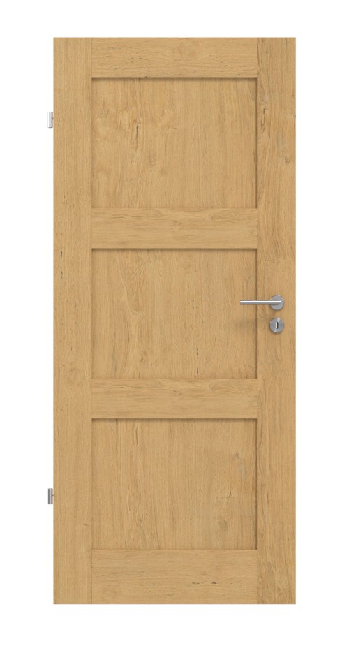 Trzy płaskie wypełnienia nadają modelowi wyraźną strukturę. Rysunki drewna, stworzone przez naturę, zdobią dąb, który w swojej ciepłej estetyce tworzy przytulną atmosferę.