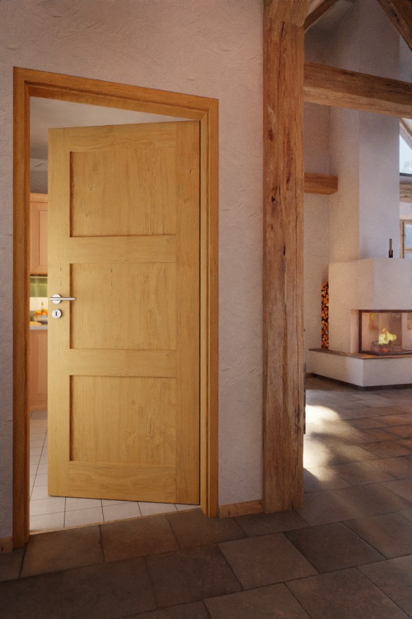 Drzwi z litego drewna są wykonane w technologii klejenia warstwowego. W celu uzyskania odpowiedniego wykończenia możesz dokonać wyboru w menu konfiguracji. Alternatywnie, standardowo nieobrobiona powierzchnia oferuje elastyczne możliwości samodzielnego wykończenia drzwi.