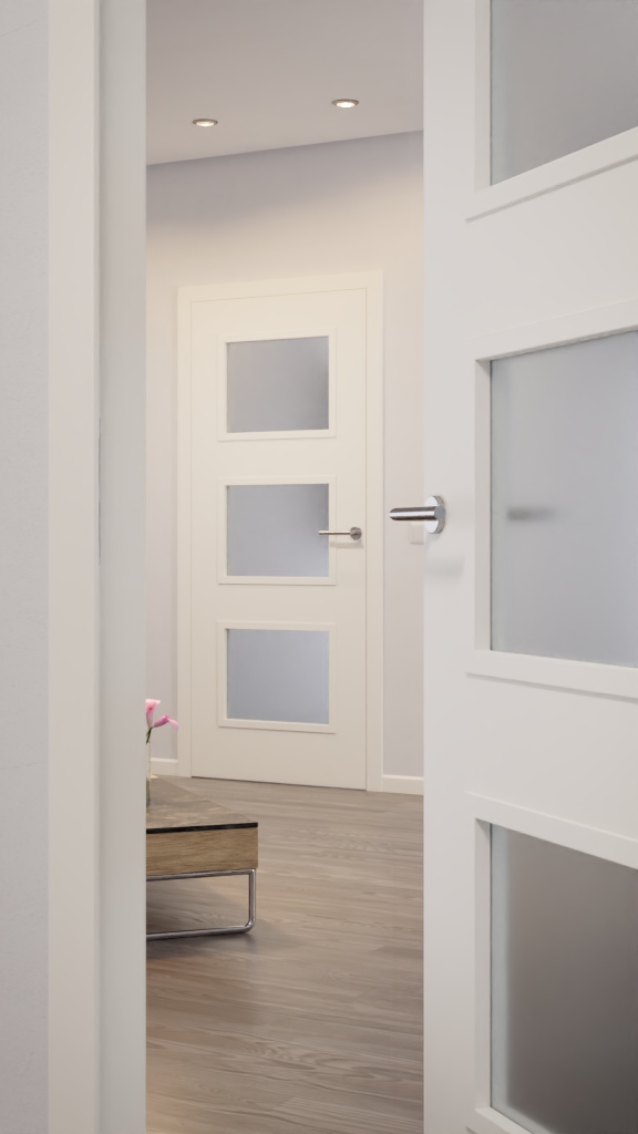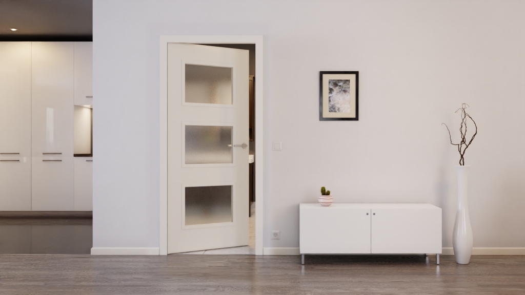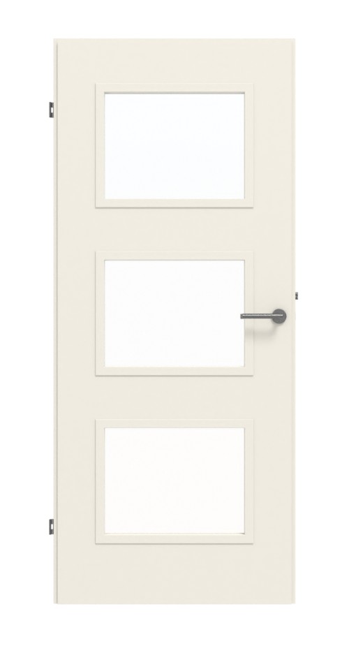 Gładki skrzydło drzwi sprawia wrażenie czystego i świeżego. Dzięki trzem prostokątnym przeszkleniom model ten dodaje pomieszczeniu przestronności. Skrzydło drzwiowe prawie całkowicie wypełnia otwory. Listwy mogą być opcjonalnie produkowane również w wersji zlicowanej. Warstwa wierzchnia jest wielokrotnie lakierowana w klasycznym odcieniu bieli RAL 9010 . Dzięki temu zyskują Państwo wysokiej jakości powierzchnię, która cieszy zarówno wzrok, jak i dotyk.