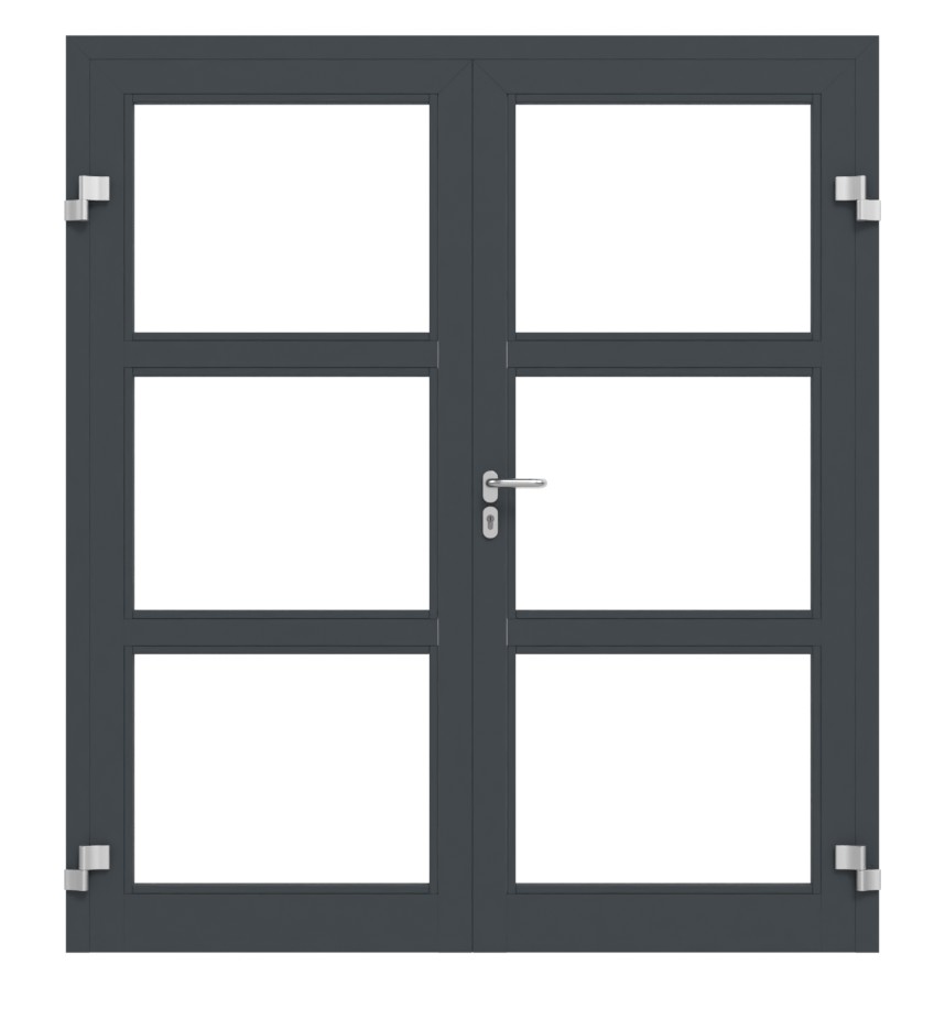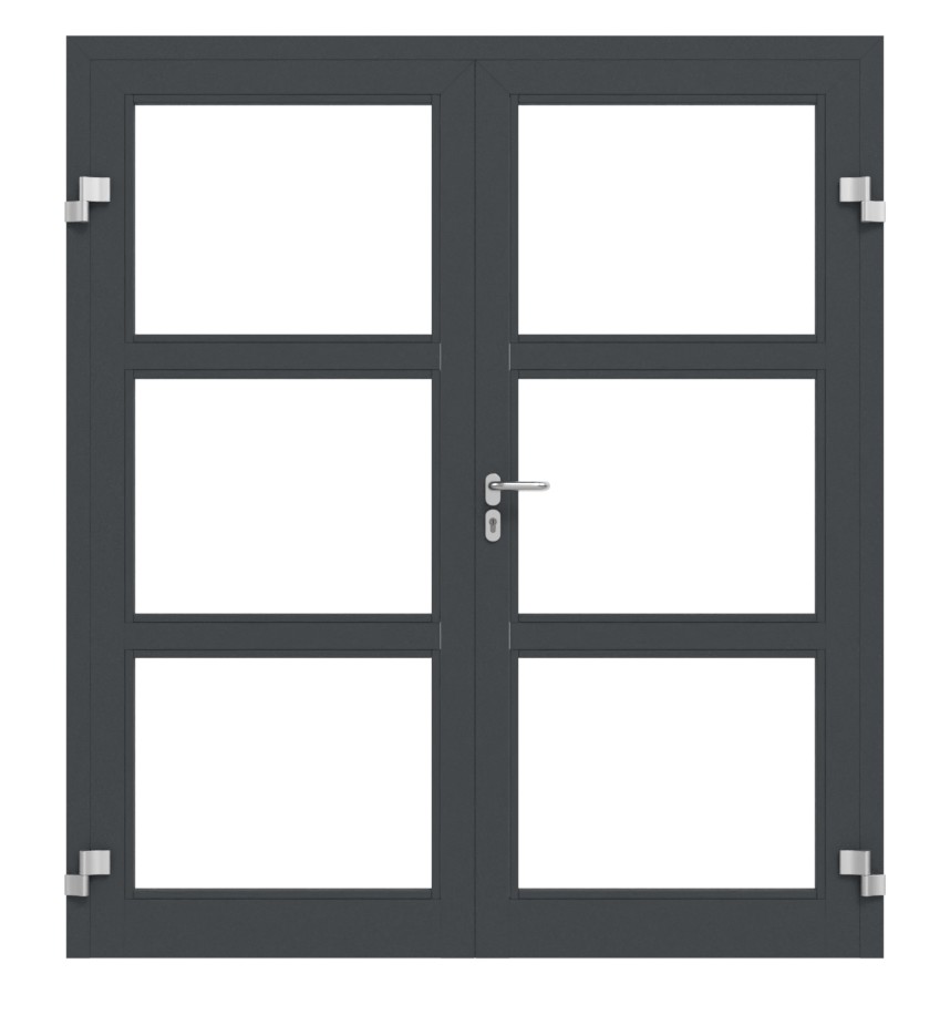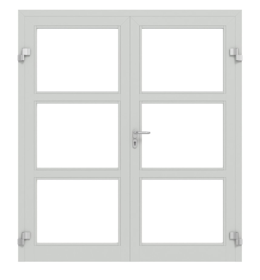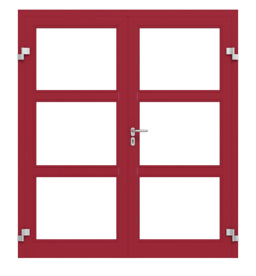 Drzwi z podwójnym skrzydłem ES 50 LA-03 od Hörmann z klamką i ościeżnicą blokową: