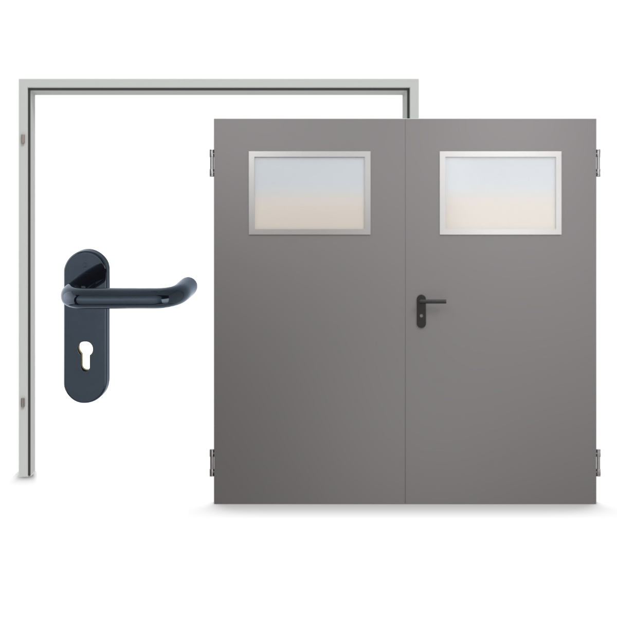 Drzwi są szczególnie stabilne dzięki podwójnej ściance o grubości 40 mm z 3-stronnym grubym zamkiem. Składają się z ocynkowanej blachy stalowej o grubości 0,6 mm oraz w pełni klejonego wkładu kompozytowego. W zestawie znajduje się ościeżnica, zamek wpuszczany z cylindrem profilowym zgodnym z normą DIN 18251 klasa 3, pułapka z tworzywa sztucznego i stalowy rygiel, czarna klamka oraz ocynkowane górne zawiasy, które są mocno przykręcone do wzmocnień.