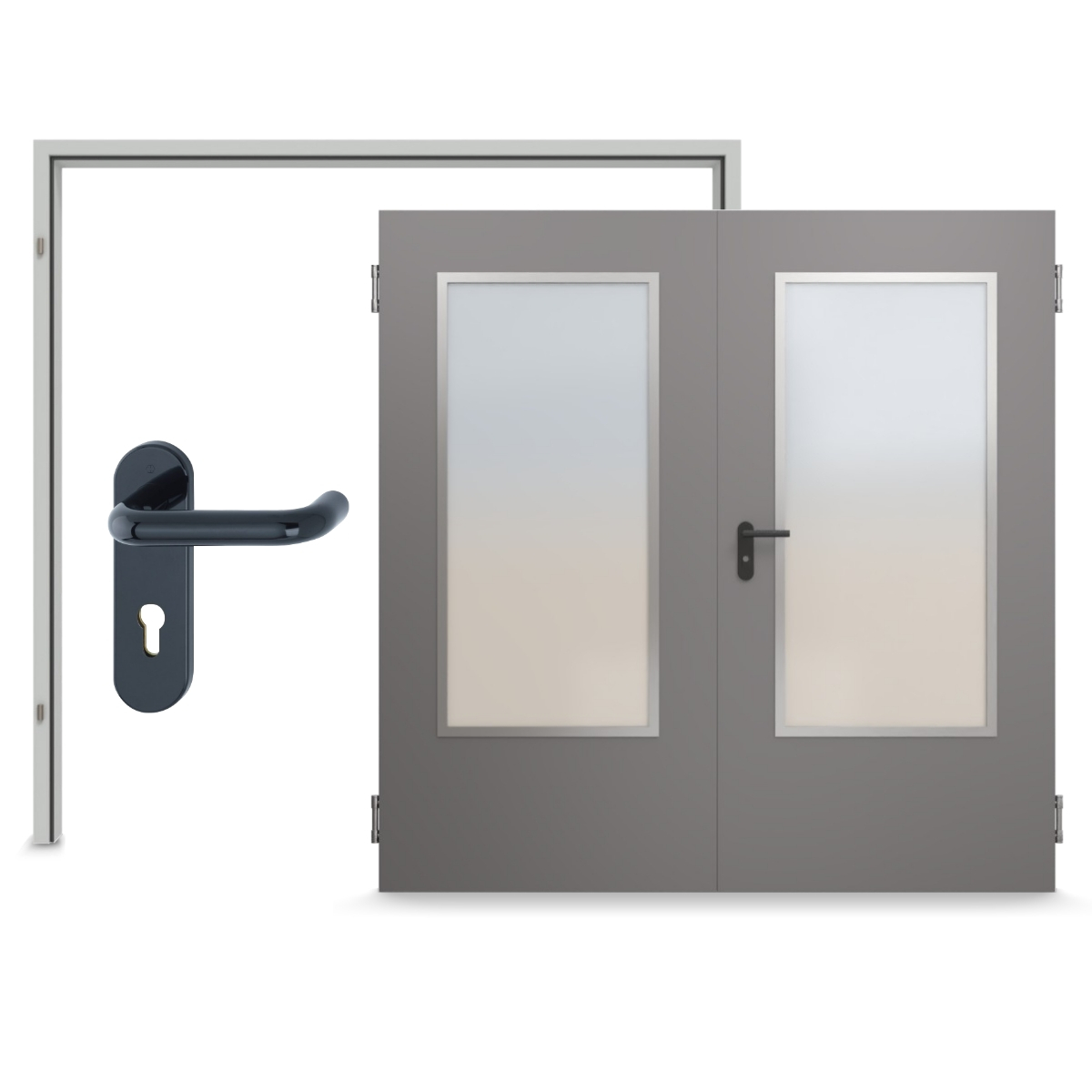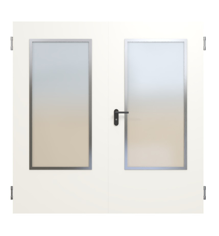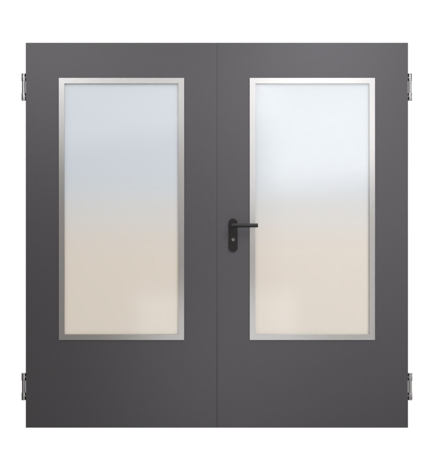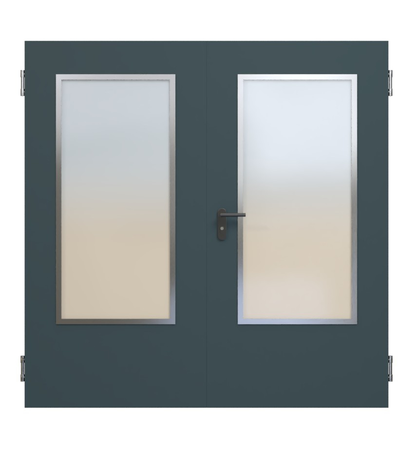 Drzwi są szczególnie stabilne dzięki podwójnym ściankom, 40 mm grubemu skrzydłu z 3-stronnym grubym zamkiem. Składają się z ocynkowanej blachy stalowej o grubości 0,6 mm oraz w pełni klejonego wkładu kompozytowego. W zakupie zawarte są ościeżnica, zamek wpuszczany z otworem na profil cylindryczny zgodny z DIN 18251 klasa 3, czarna klamka, plastikowy zaczep i stalowy rygiel, a także ocynkowane górne zawiasy, które są mocno przykręcone do wzmocnień.