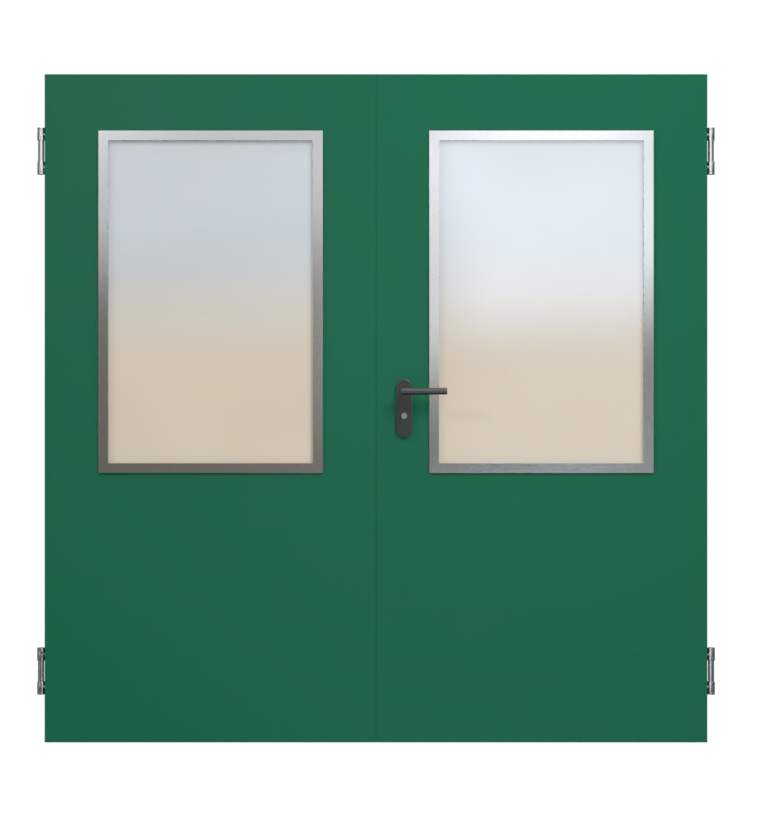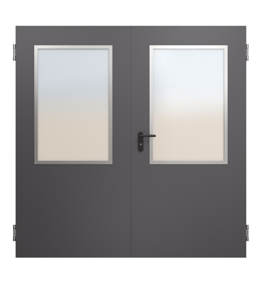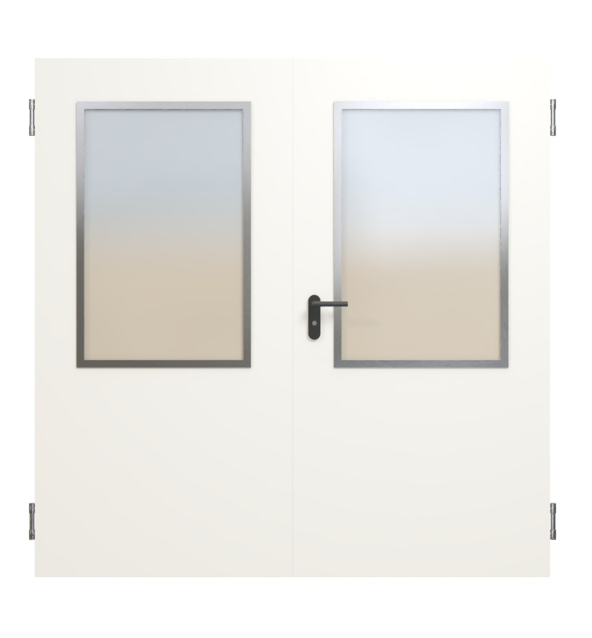 Drzwi są szczególnie stabilne dzięki podwójnej ściance o grubości 40 mm z 3-stronnym grubym brzegiem. Składają się z ocynkowanej blachy stalowej o grubości 0,6 mm oraz w pełni klejonego wkładu kompozytowego. W zestawie znajduje się ościeżnica, zestaw klamek, zamek wpuszczany z otworem na profil cylindryczny z wymiennikiem zgodnym z DIN 18251 klasa 3, pułapka z tworzywa sztucznego oraz stalowy rygiel, a także ocynkowane górne zawiasy, które są mocno przykręcone do wzmocnień.