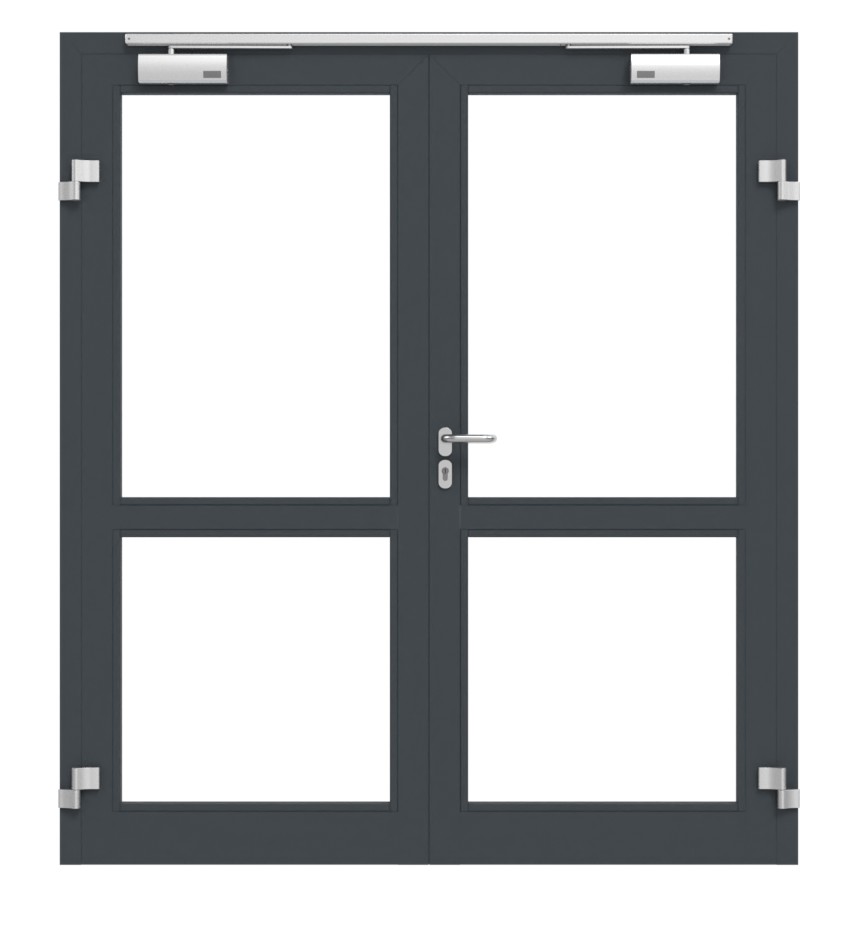 Najwyższa technologia produktu: Dwuskrzydłowy zestaw drzwi ramowych aluminiowych RS 250 LA-02 będzie chronić cię przed niebezpiecznymi gazami dymowymi.