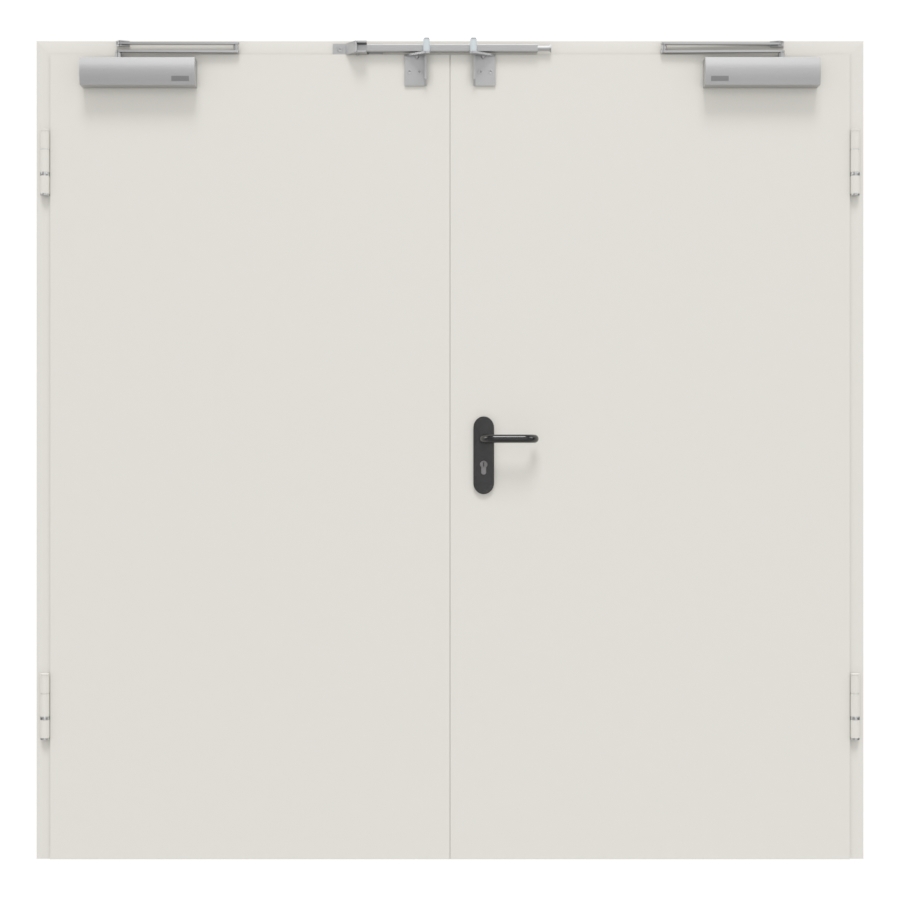 Między innymi wkład przeciwpożarowy z wełny mineralnej zapobiega przenikaniu ognia przez skrzydła drzwi przez co najmniej 90 minut. Odporność ogniowa jest zgodna z normami bezpieczeństwa DIN 4102 i EN 1634. Kolejną podstawową cechą dwuskrzydłowego elementu drzwiowego jest jego wyjątkowa wytrzymałość. Wynika to z grubości drzwi wynoszącej 65 mm, wbudowanej blachy stalowej oraz konstrukcji kompozytowej przyklejonej na całej powierzchni. Dzięki tym cechom model ten wytrzymuje duży ruch .