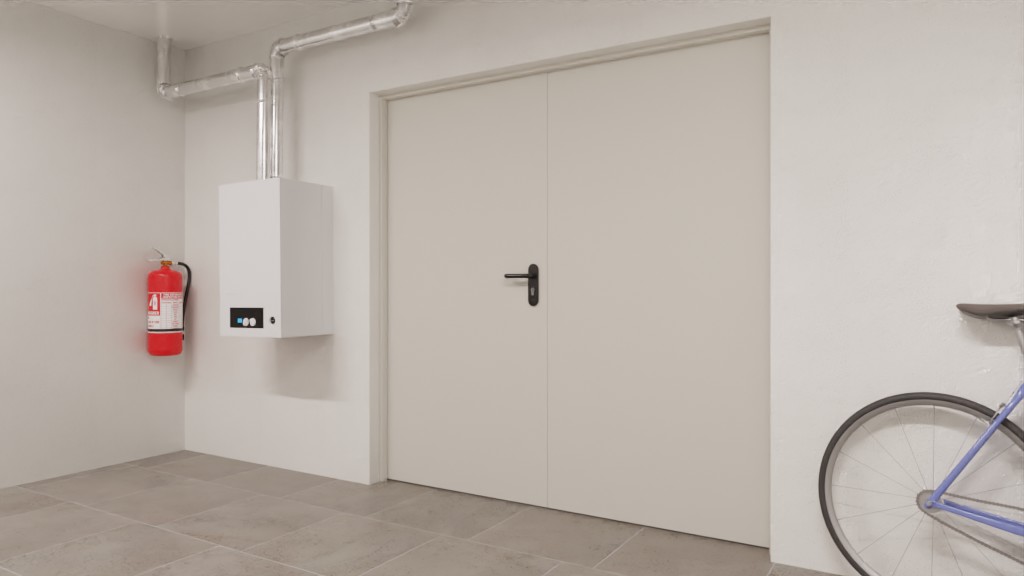 Ochrona w razie pożaru przez co najmniej 90 minut: Drzwi przeciwpożarowe stalowe H16-2 OD firmy Hörmann, 2-skrzydłowe, zapobiegają rozprzestrzenianiu się ognia na inne pomieszczenia przez dłuższy czas.
