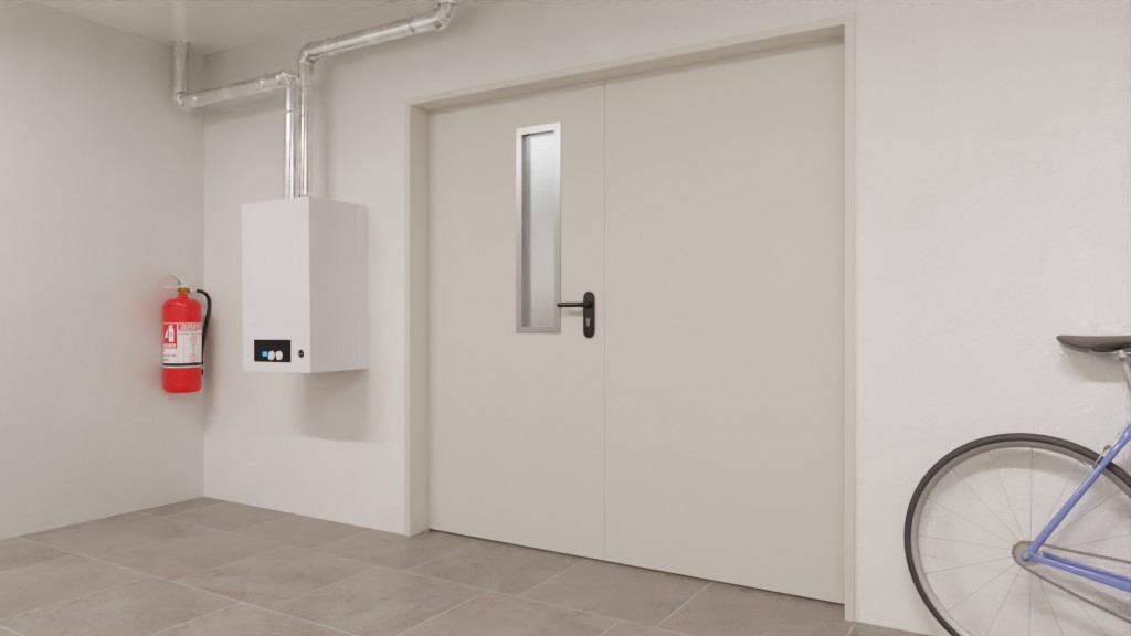 Model ten spełnia przepisy budowlane dotyczące drzwi przeciwpożarowych zgodnie z normami bezpieczeństwa DIN 4102 i EN 1634, zapewniając odporność ogniową przez co najmniej 90 minut. W związku z tym izolacja skrzydła ruchomego i stałego wykonana jest z ognioodpornej wełny mineralnej. Szczególną wytrzymałość zapewnia grubość drzwi wynosząca 65 mm, wbudowana blacha stalowa oraz konstrukcja kompozytowa klejona na całej powierzchni. Drzwi te nadają się do stosowania w miejscach o dużym natężeniu ruchu .