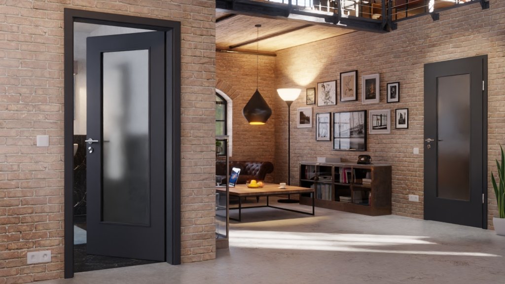 Trwały zestaw drzwi z łatwą w pielęgnacji powierzchnią w kolorze grafitowym: