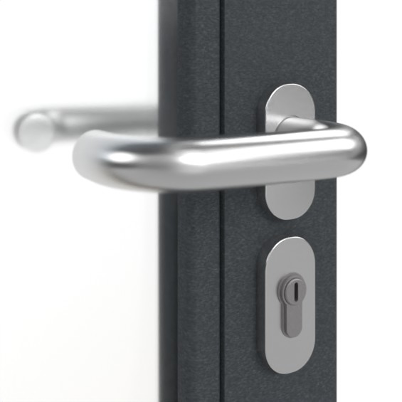 Drzwi ramowe RS 150 LA 03 z ochroną przed dymem od Hörmann z ościeżnicą blokową i klamką: