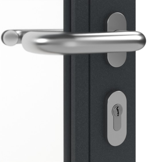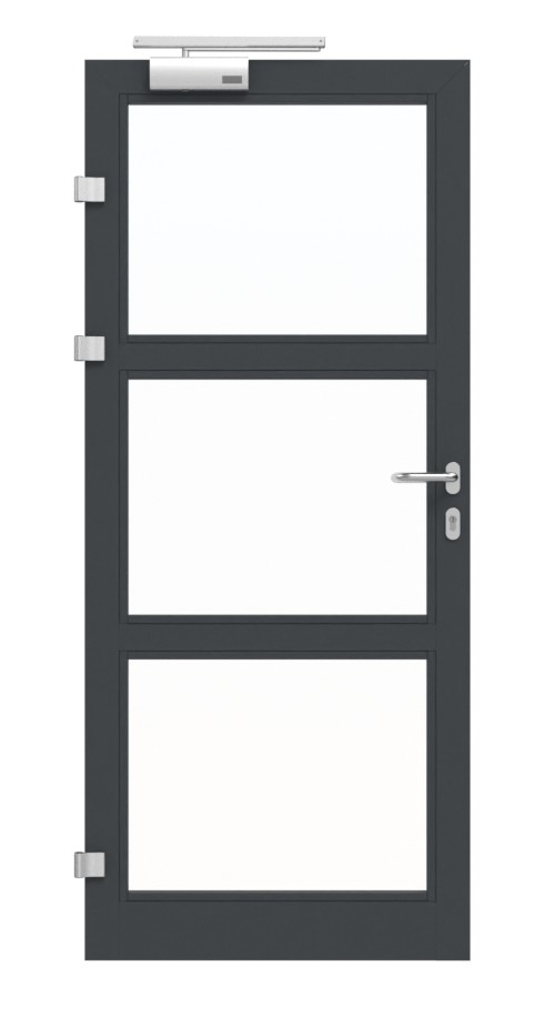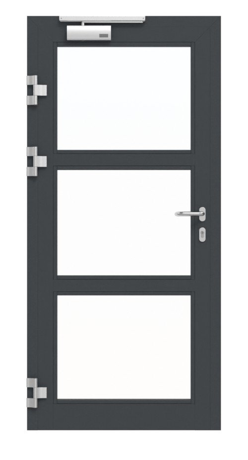 Jednoskrzydłowe drzwi ramowe HE 911 LA 03 marki Hörmann z klamką i ościeżnicą blokową: