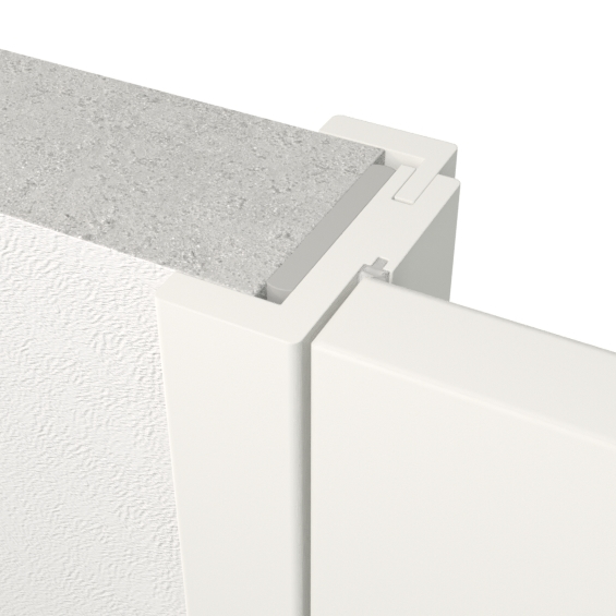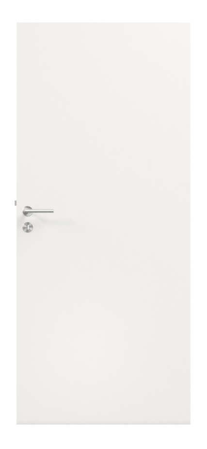 Jednolity design drzwi i ościeżnicy jest szczególnie harmonijnie podkreślony przez konstrukcję z tępo zakończonymi drzwiami. Aby niedopasowane skrzydło drzwi idealnie wpasowało się w ościeżnicę, jest ona fabrycznie odpowiednio przygotowana. Niezawodne mocowanie zapewniają wysokiej jakości zawiasy, które opcjonalnie mogą być wykonane w wersji ukrytej. Stal nierdzewna satynowana klamka dopełnia całości.