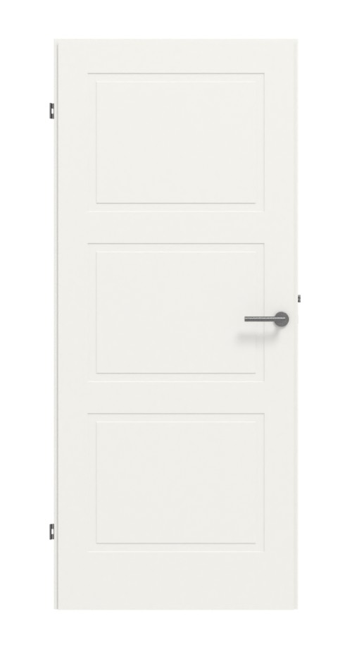 Miłośnicy symetrii uznają to skrzydło drzwiowe za absolutny must-have, ponieważ trzy identyczne wypełnienia rozmieszczone są jedno pod drugim i zajmują niemal całą powierzchnię skrzydła. Są one oddzielone od krawędzi drzwi za pomocą dyskretnych frezowań.