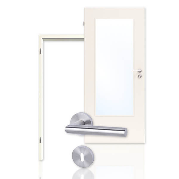 Stylowe urządzanie i oszczędność: Wzbogac swoje wnętrza i oszczędzaj dzięki korzystnemu zestawowi składającemu się z klasycznie białej drzwi wewnętrznych RAL 9010 z przeszkleniem od Westag, dopasowanej ościeżnicy oraz zamka do drzwi.
