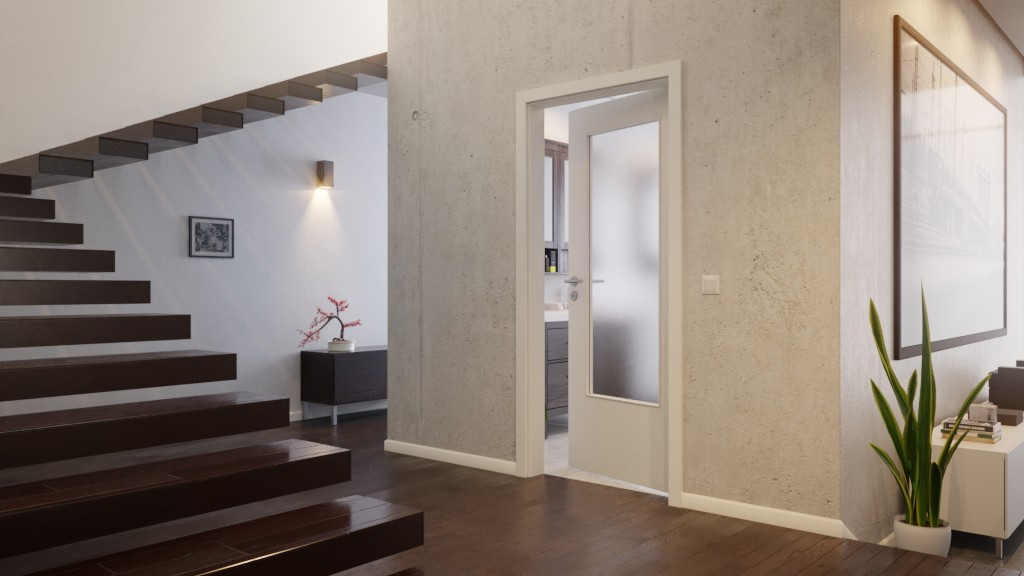 Drzwi są wielokrotnie lakierowane, co zapewnia odporność na ścieranie oraz matową, jedwabistą powierzchnię. Ich klasyczny odcień bieli harmonizuje z niemal każdym wnętrzem. Drzwi i ościeżnica, dopasowane pod względem dekoracyjnym, tworzą harmonijną całość. Prosty, uchwyt w kształcie L elegancko dopełnia zestaw.