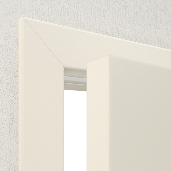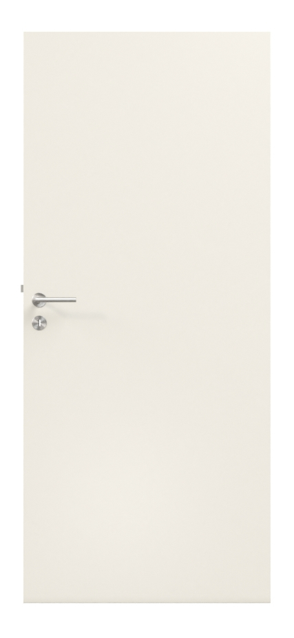 Gładkie drzwi wyróżniają się prostokątnym krawędziowaniem. Ościeżnica jest fabrycznie przygotowana do montażu drzwi z tłoczeniem, pasując do dekoru. Wysokiej jakości zawiasy umożliwiają płynne przejście między drzwiami a ościeżnicą. Stalowa klamka satynowa dopełnia ofertę zestawu.