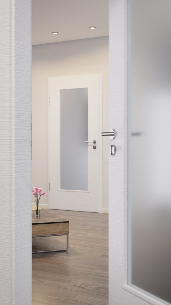 - Zakres dostawy: skrzydło drzwiowe, zamek wielozadaniowy, 2x dwuczęściowe zawiasy, szklenie