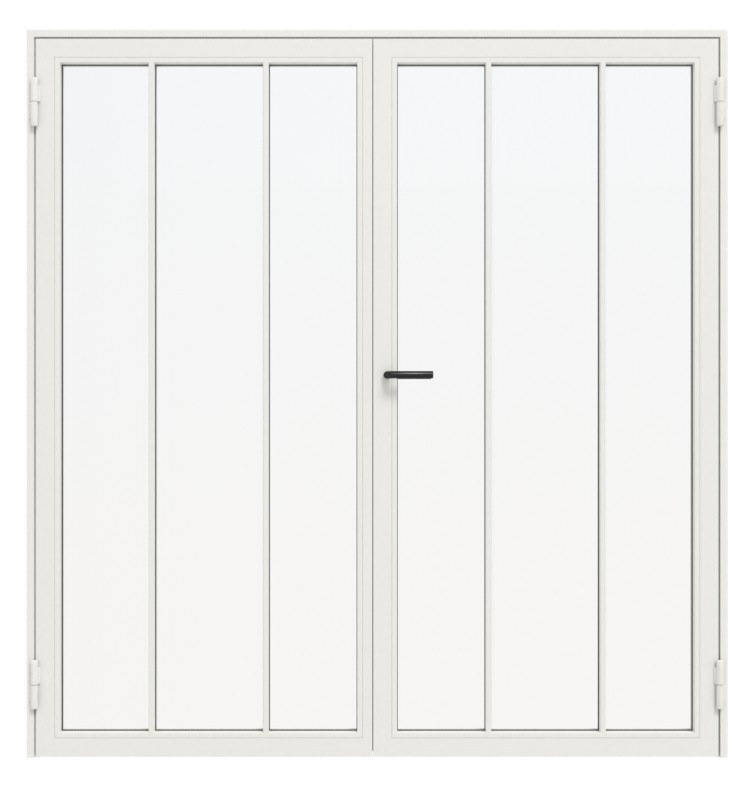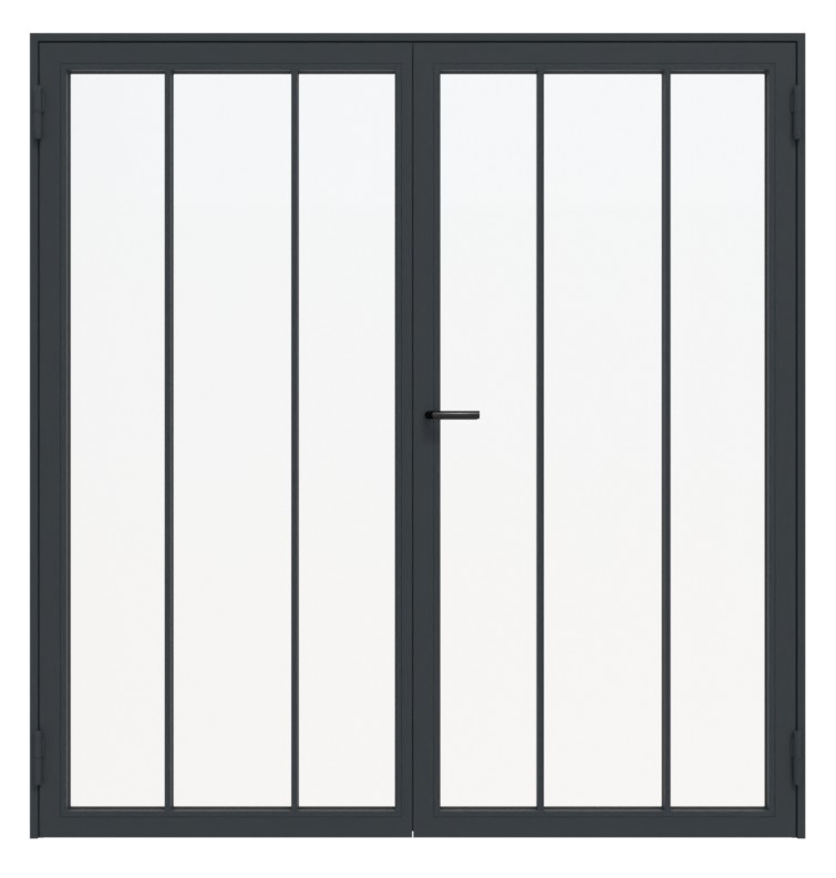 Dzięki szkłu klejonemu VSG o grubości 6 mm do Twojego domu wpada dużo światła, nadając mu przyjazny charakter. Dwa pionowe szprosy dzielą oba skrzydła drzwi na trzy wąskie segmenty.