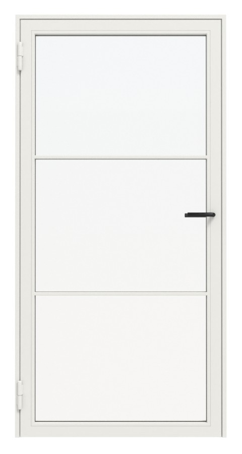 • Wycinek świetlny: w standardzie ze szkłem bezpiecznym warstwowym (6 mm), Wąska listwa mocująca szkło po stronie zawiasów i przeciwnej