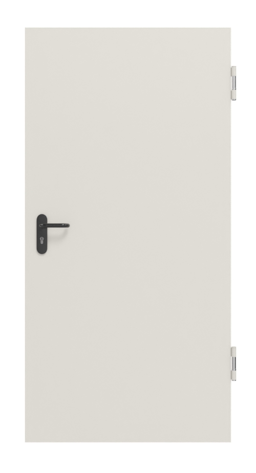Oprócz drzwi wewnętrznych zestaw zawiera również ościeżnicę oraz zestaw klamkowy. Izolacja odbywa się za pomocą zamontowanej płyty mineralnej. Całkowicie klejona konstrukcja kompozytowa zapewnia solidne i stabilne drzwi stalowe.