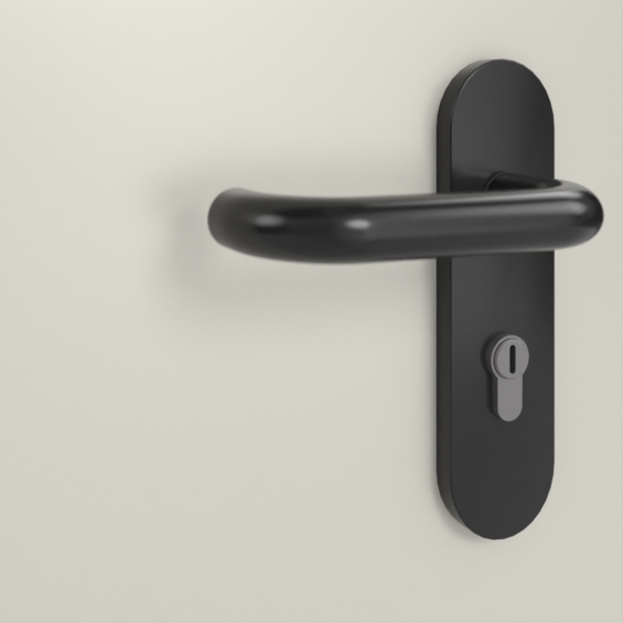 Czarna klamka z tworzywa sztucznego typu D-110 z krótką tarczą dopełnia zestaw: