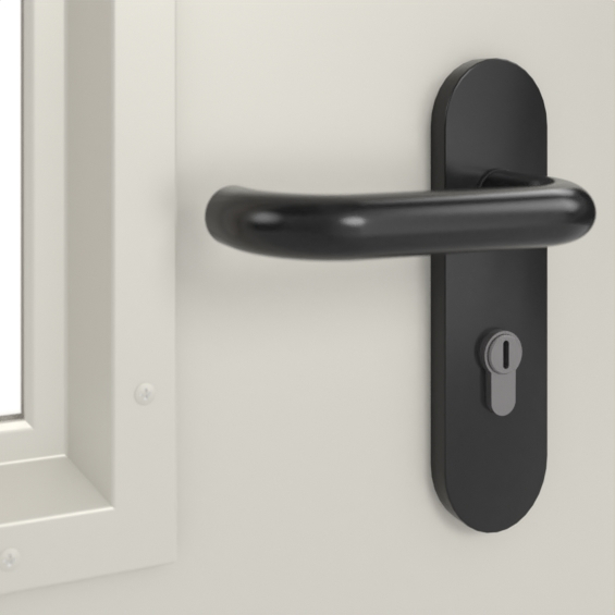 Czarna klamka z tworzywa sztucznego typu D-110 z krótką tarczą dopełnia zestaw: