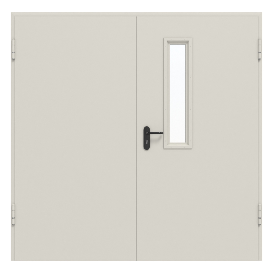 Kompletny zestaw drzwi wewnętrznych od Hörmann, w tym stalowe drzwi wielofunkcyjne D65-2 OD LA-B1, ościeżnica i klamka: