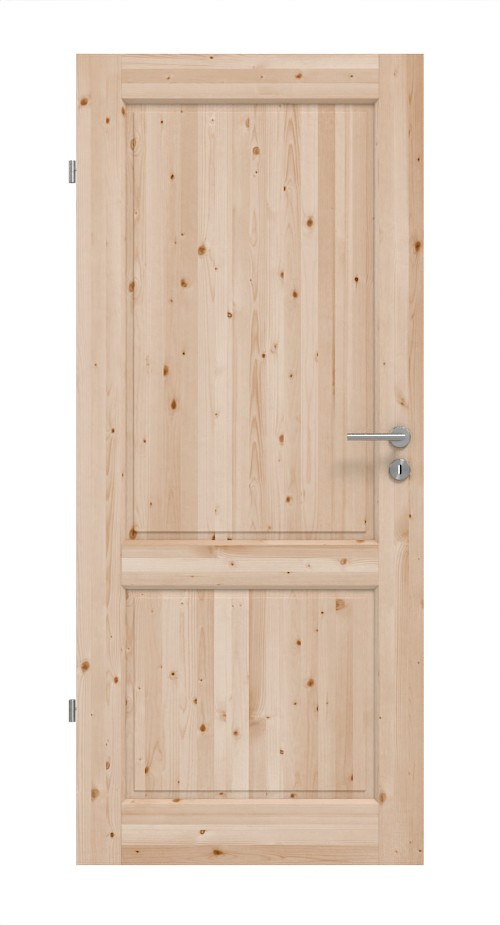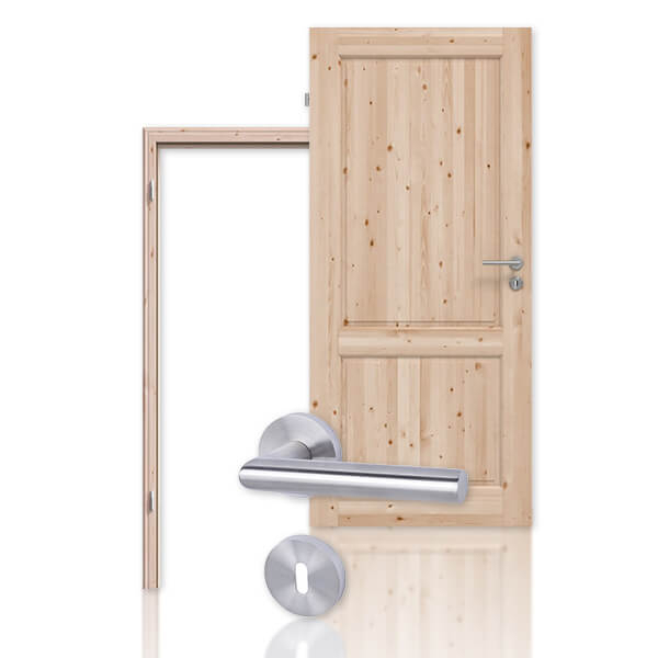 Zestaw trzy w jednym: Dzięki korzystnemu zestawowi od Kilsgaard z drzwi wewnętrznych z litego drewna typu 02-02 z świerku, ościeżnicy oraz klamki zapewniasz sobie jakość w niskiej cenie.