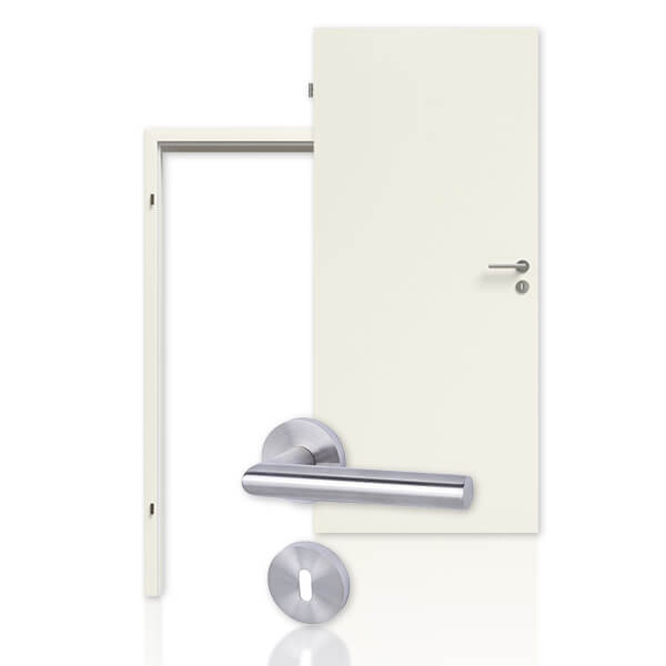 Nowoczesny design w białym kolorze w najlepszej cenie: Wybierając drzwi wewnętrzne Typ 43-00 w TopBiałym (podobnym do RAL 9003) z ościeżnicą i klamką, dokonujesz najlepszego wyboru.
