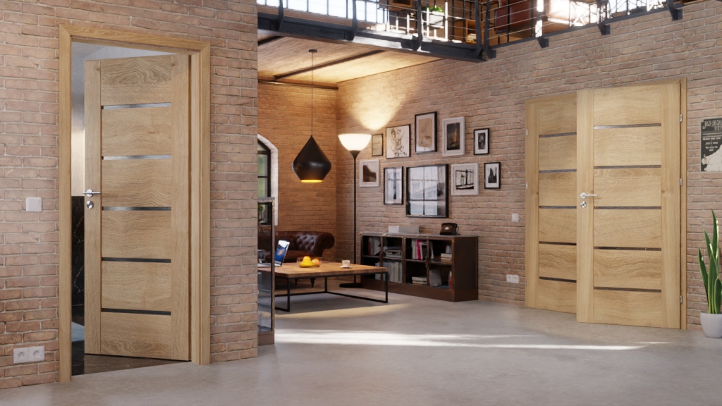 Autentyczny dekor drewna nadaje modelowi ciepły wyraz. Dzięki wąskim przeszkleniom powstaje transparentny akcent.