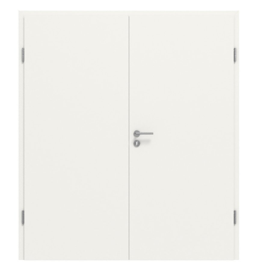 Niedrogie drzwi wewnętrzne z dwoma skrzydłami: Podwójne drzwi Basic 4.19 w kolorze białym zbliżonym do RAL 9016 zachwycają imponującym wyglądem i atrakcyjną ceną.