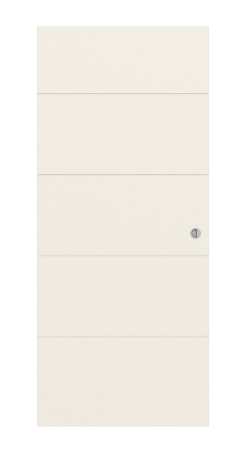 Cztery linie są wytłoczone na skrzydle drzwi, co tworzy geometryczny wzór. Eleganckie białe lakierowanie nadaje nowoczesny wygląd.