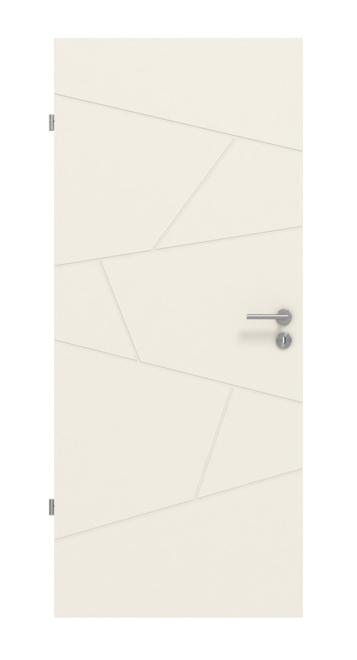 Dzięki ukośnym liniom na skrzydle drzwi powstaje wzór patchworkowy. Białe lakierowanie nadaje modelowi nowoczesny wygląd.