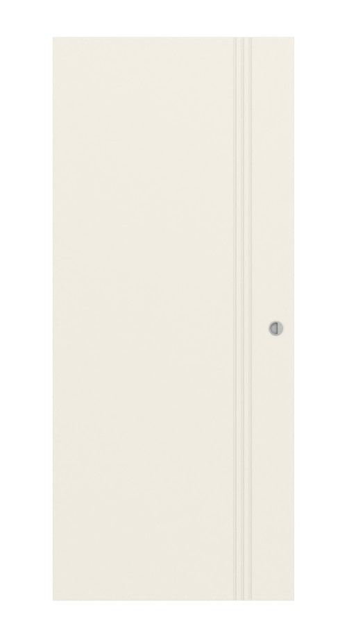 Dzięki trzem wytłoczonym liniom powstaje prosty design drzwi. Biała lakierowana powierzchnia podkreśla klarowny wygląd.