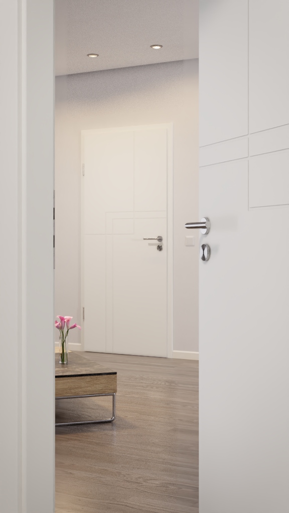 Funkcjonalny model drzwi w promiennej bieli: Prosto zaprojektowane drzwi wewnętrzne Dynamic 3.3 w białym lakierze RAL 9003 od Classen są łatwe w pielęgnacji.