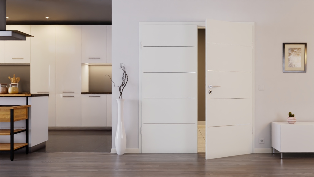 Cztery poziome listwy na każdym skrzydle drzwi nadają modelowi elegancki i nowoczesny wygląd. To wrażenie potęguje lakier w eleganckiej bieli.