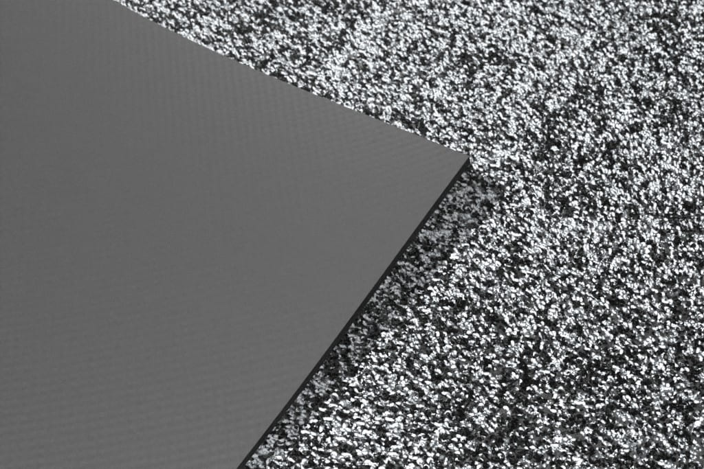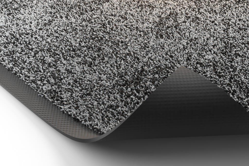 Tył i obramowanie wykonane są z solidnej i ciężkiej czarnej gumy nitrylowej. Dzięki dużej wadze mata nie przesuwa się i nie tworzy niebezpiecznych przeszkód. Zmniejszone ryzyko poślizgu wynika z zdolności absorpcji płynów do 4 litrów. Produkcja może powodować odchylenia wymiarowe do +/- 5 % we wszystkich matach nadających się do prania. Ponieważ są one wykonywane na wymiar, wymiana nie jest możliwa.