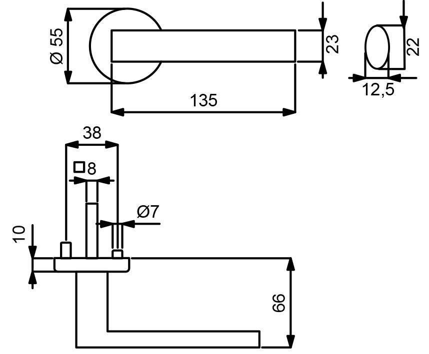Uchwyt w kształcie litery L o płasko-elliptycznym kształcie wygodnie leży w dłoni i zapewnia komfortową obsługę. Satynowa powierzchnia ze stali nierdzewnej nadaje klamce elegancki wygląd i jest jednocześnie odporna na zużycie.