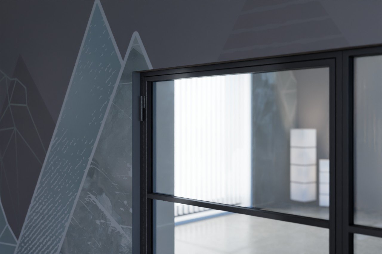 Estetyczne drzwi loftowe stalowe z bocznym panelem i drobnoziarnistą powłoką proszkową: