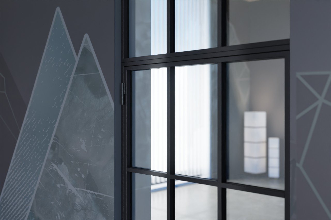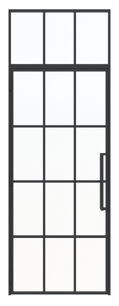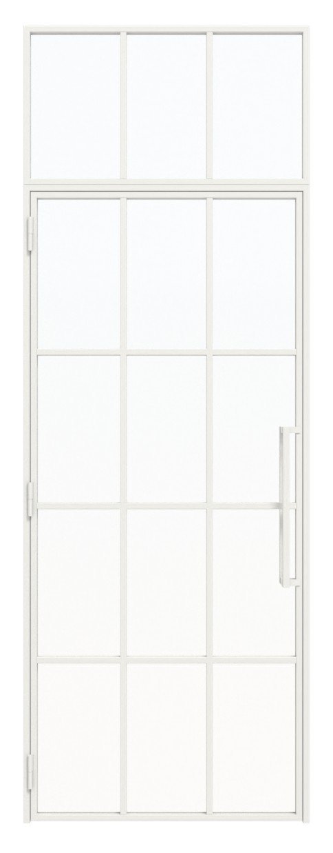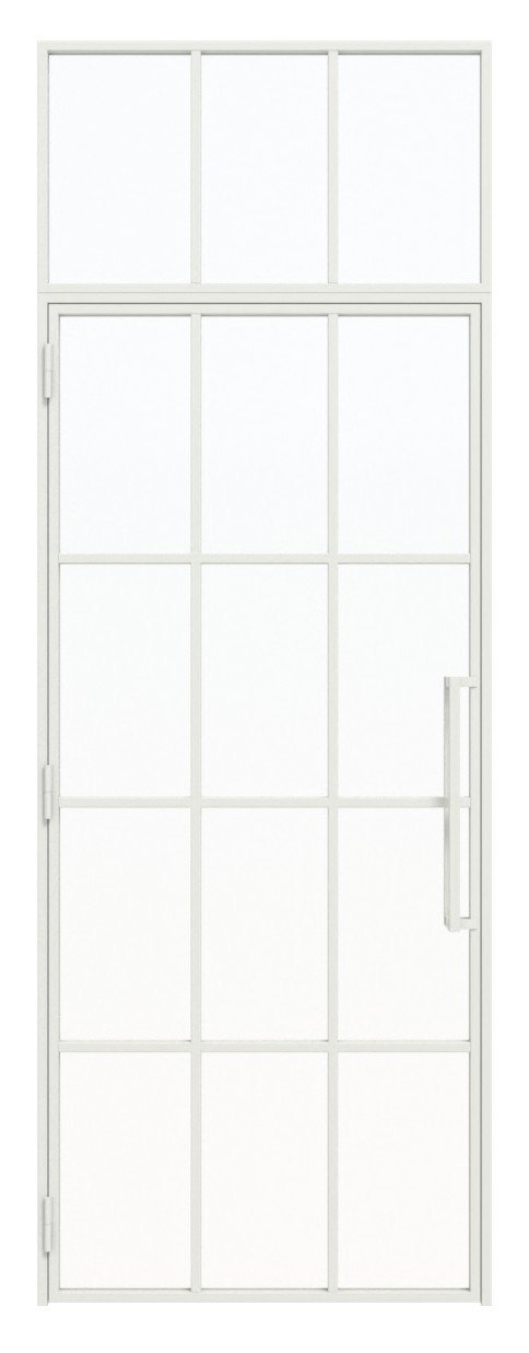 Nowoczesne drzwi loftowe stalowe z naświetlem górnym i powierzchnią stalową malowaną proszkowo: