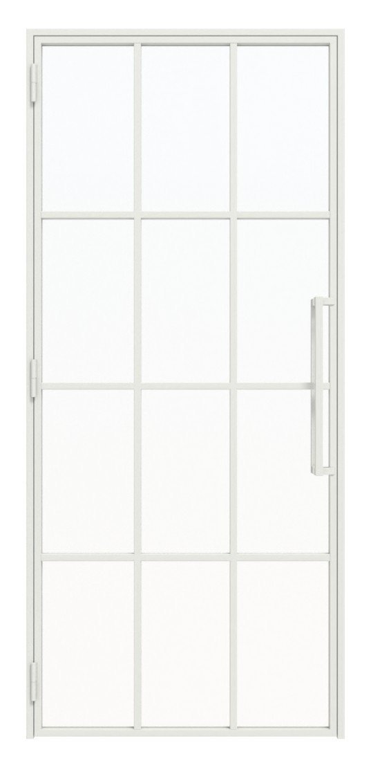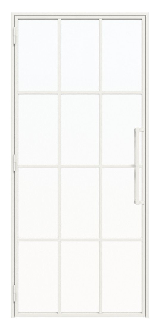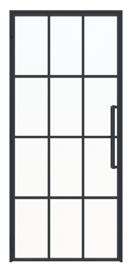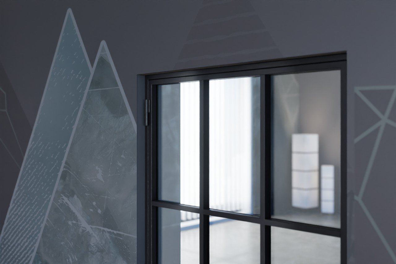 Eleganckie drzwi loftowe stalowe z profilami z zimnowalcowanej stali i słupkami: