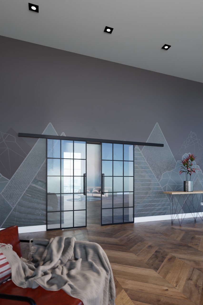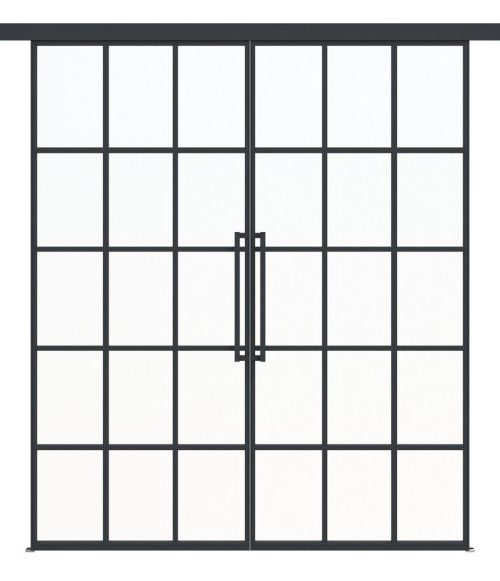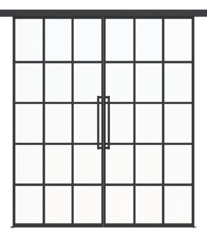 Harmonijne 2-skrzydłowe stalowe drzwi przesuwne loftowe z ramą ze stali walcowanej na zimno w zestawie:
